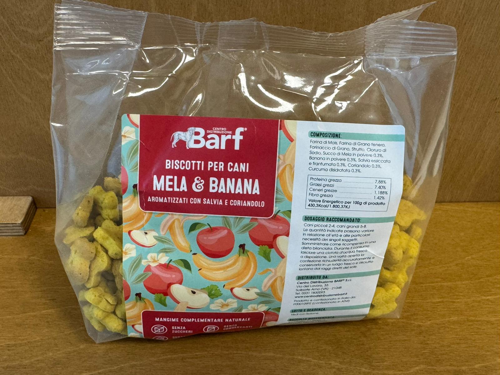 Biscotto naturale per cani, senza conservanti e additivi, lieviti, zuccheri e coloranti artificiali.