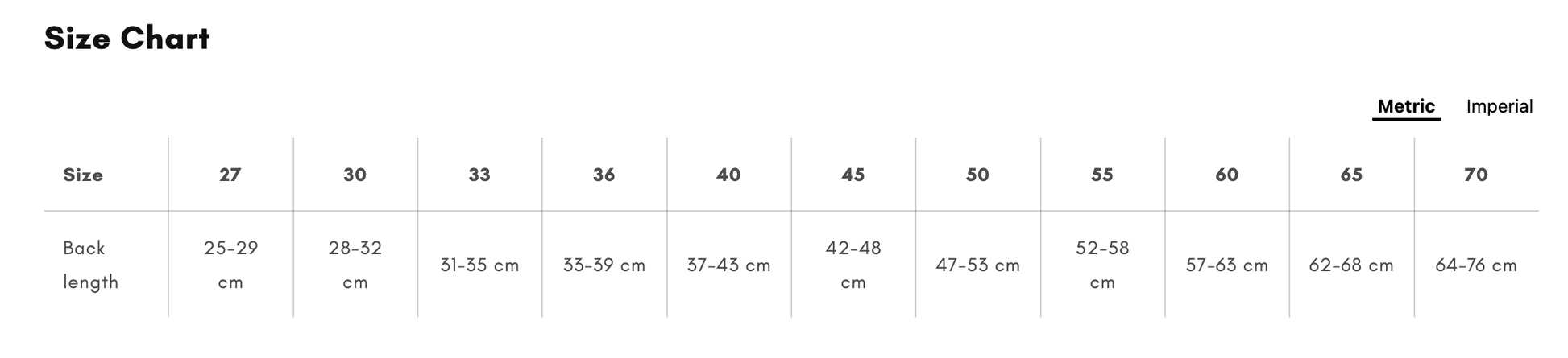 TROVA LA TUA TAGLIA: Misura la schiena del tuo cane dalla base del collo fino alla base della coda e confrontala con la tabella taglie.